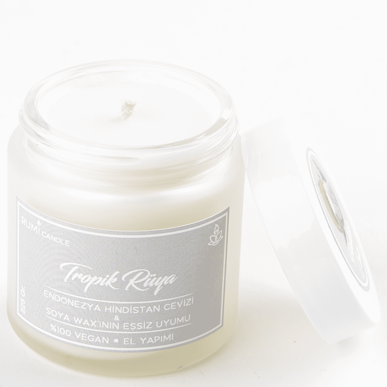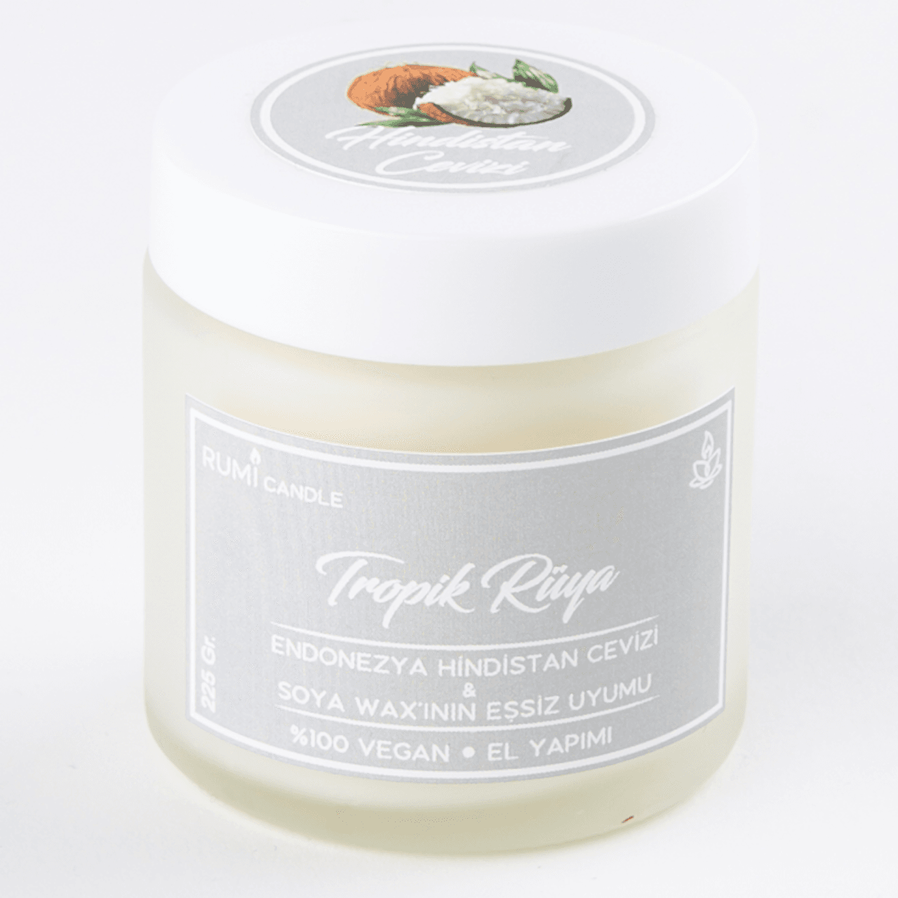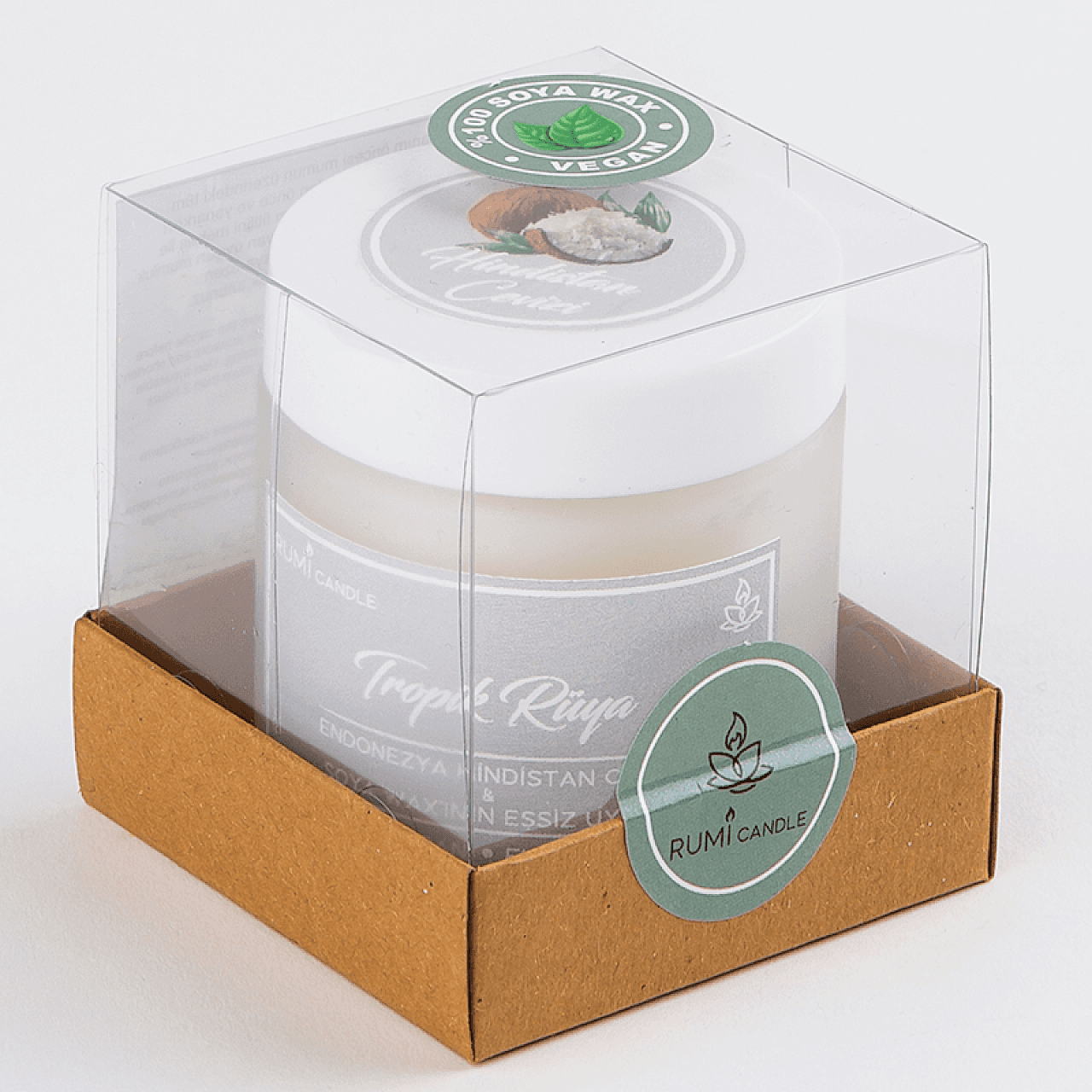 Rumi Candle Cam Kavanoz Kokulu Soya Vegan Lüx Mum Hediyelik Aromaterapik Esansiyel Yağlı Kokulu Mum Hindistan Cevizi Kokulu Mum