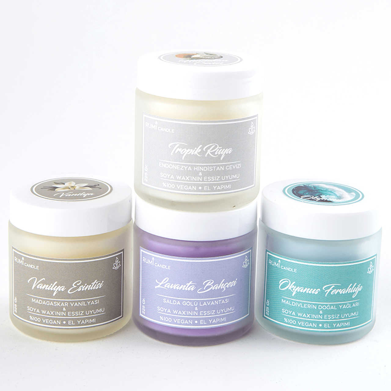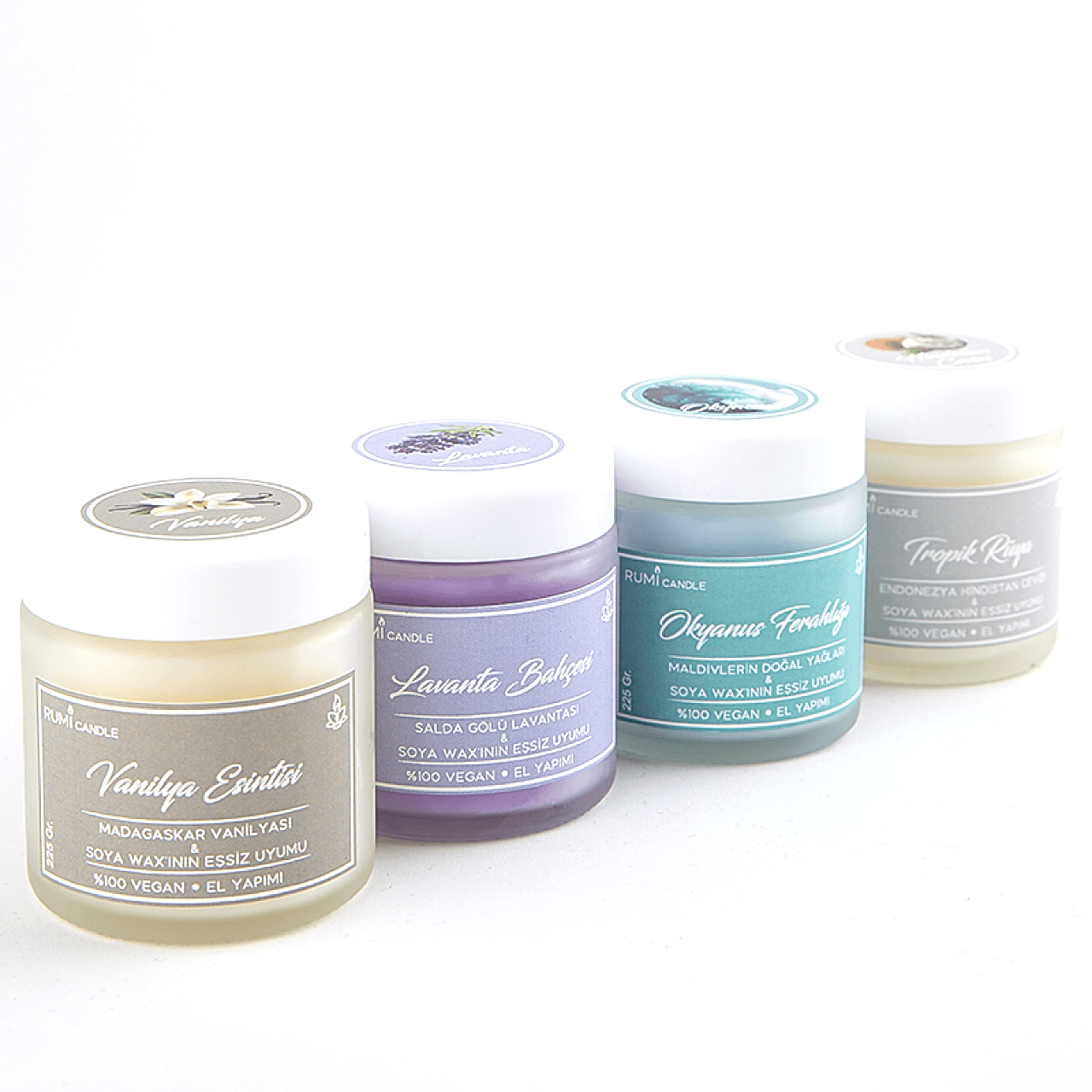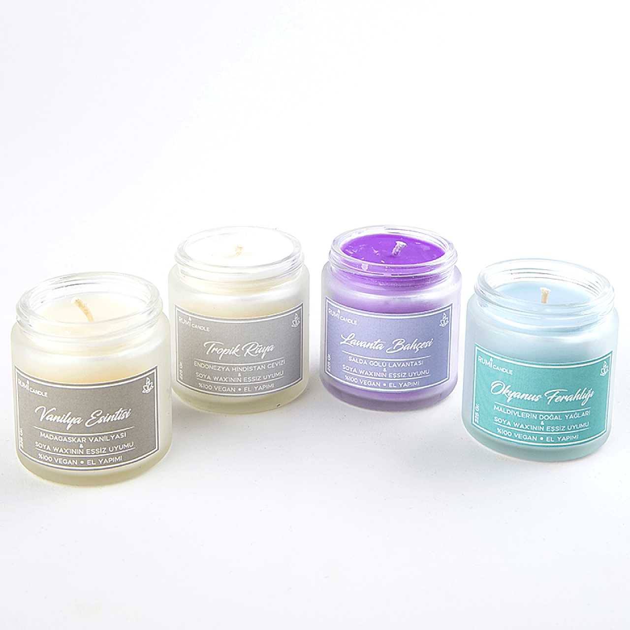 Rumi Candle Cam Kavanoz Kokulu Soya Vegan Lüx Mum Hediyelik Aromaterapik Esansiyel Yağlı Kokulu Mum Hindistan Cevizi Kokulu Mum