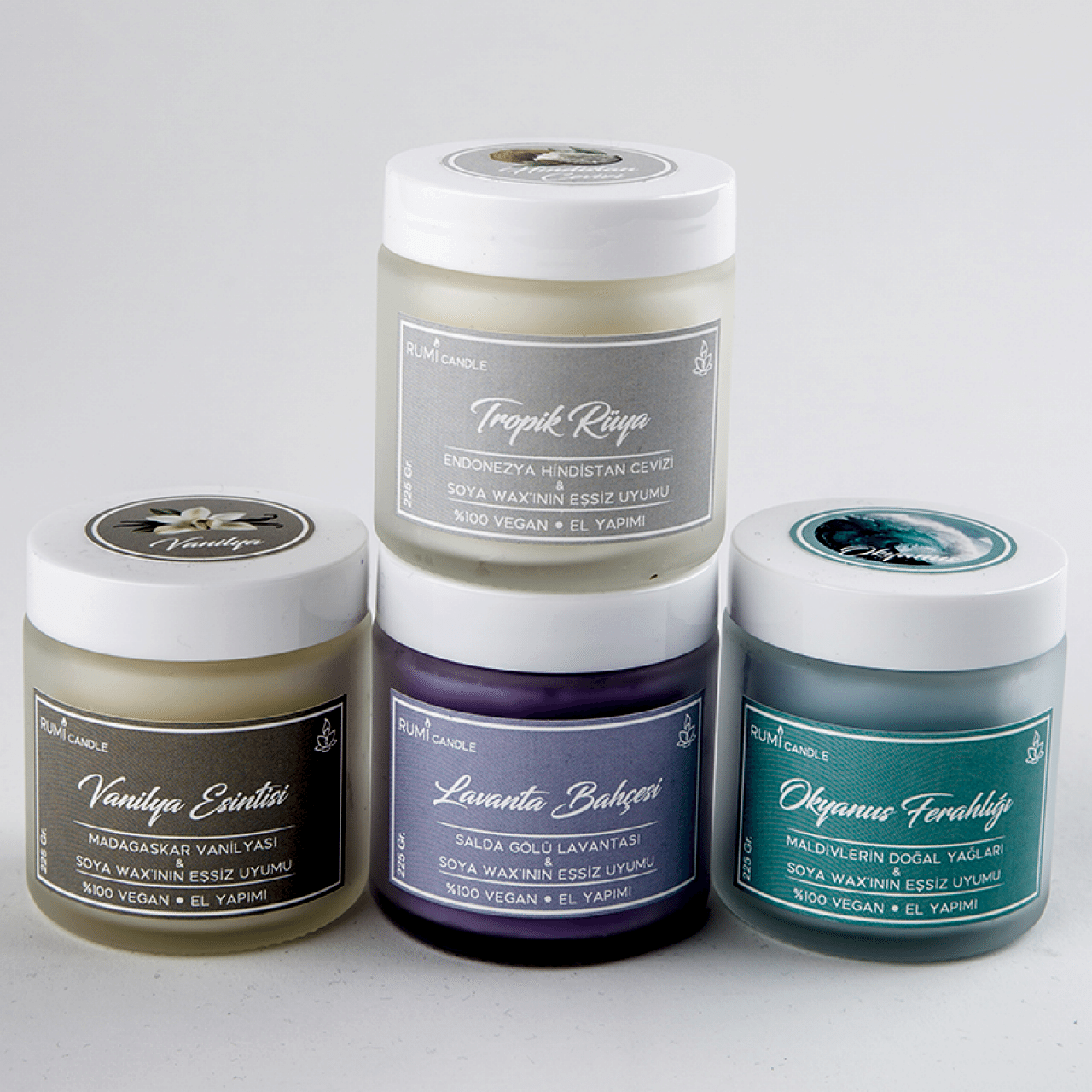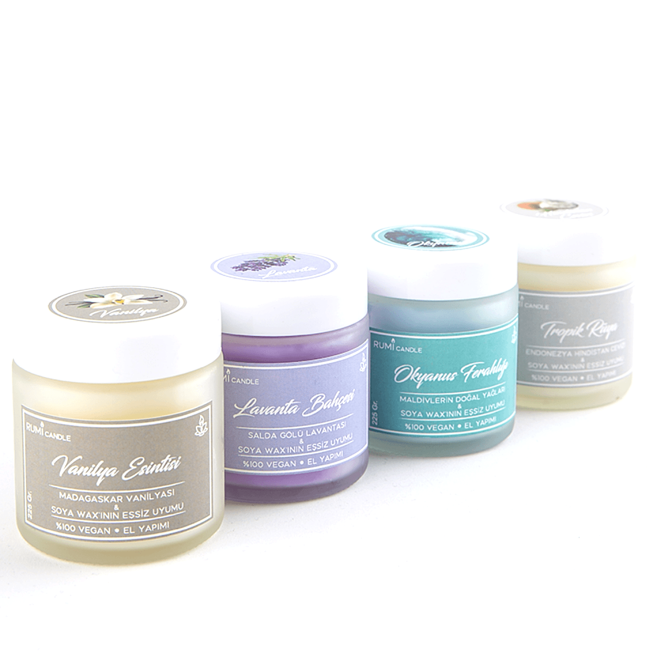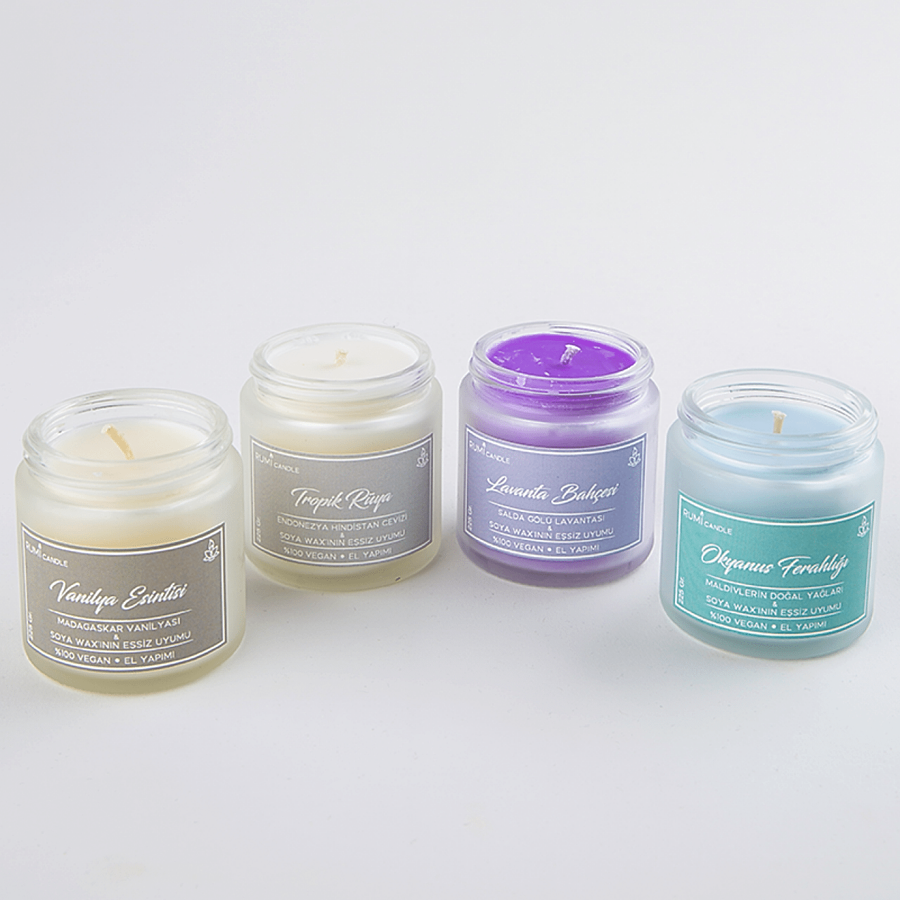 Rumi Candle Cam Kavanoz Kokulu Soya Vegan Lüx Mum Hediyelik Aromaterapik Esansiyel Yağlı Kokulu Mum Okyanus Kokulu Mum
