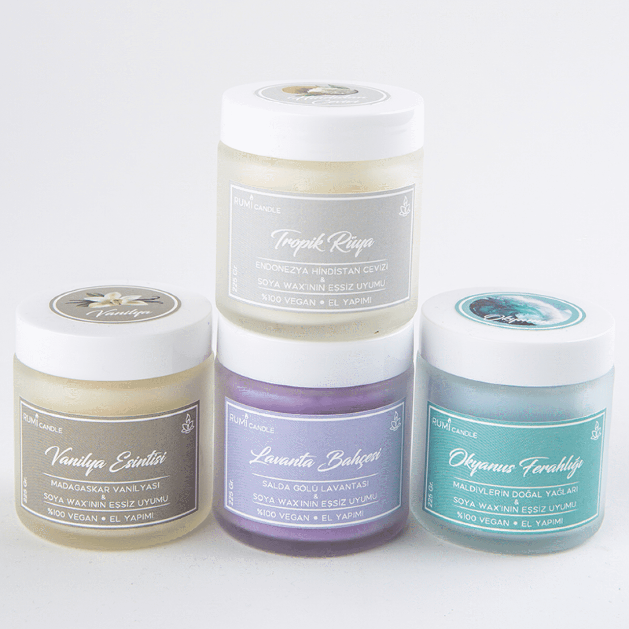Rumi Candle Cam Kavanoz Kokulu Soya Vegan Lüx Mum Hediyelik Aromaterapik Esansiyel Yağlı Kokulu Mum Vanilya Kokulu Mum
