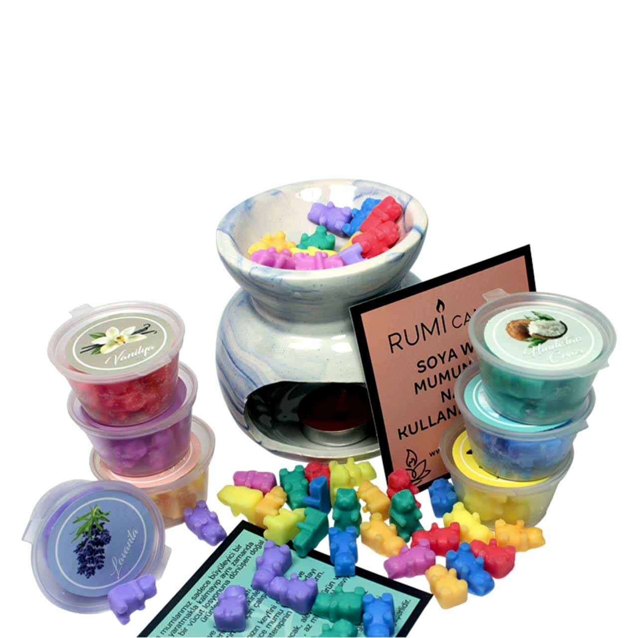 • Gummy Bear Jelibon Ayıcık şeklinde soya mumları %100 organik soya mumu ve aromaterapik bitkisel esanslardan üretilmiştir. Ürünümüz vegandır. Buhurdanlık kullanımı içindir. İstediğiniz kadarını buhurdanlık üzerinde eritebilirsiniz. Bir pakette 10'lu + 2 Adet (Hediye) olarak yollanır. Şeffaf pilastik ambalaj içerisinde gelecektir. 7 Farklı kokusu mevcuttur.